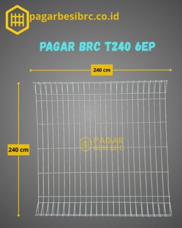 Pagar BRC (British Reinforced Concrete) ini memiliki tinggi 240 cm dengan diameter besi 7 mm merupakan pilihan terbaik untuk kebutuhan pengamanan tinggi seperti proyek skala besar, pembatas kawasan industri, bandara, fasilitas militer, atau properti dengan tingkat keamanan tinggi. Dilengkapi finishing elektroplating, yaitu proses pelapisan logam dengan menggunakan arus listrik positif dan negatif yang saling tarik-menarik dalam larutan khusus. Ion logam pelapis berpindah dan menempel merata ke permukaan pagar, sehingga menghasilkan lapisan halus, mengilap, dan tahan karat.